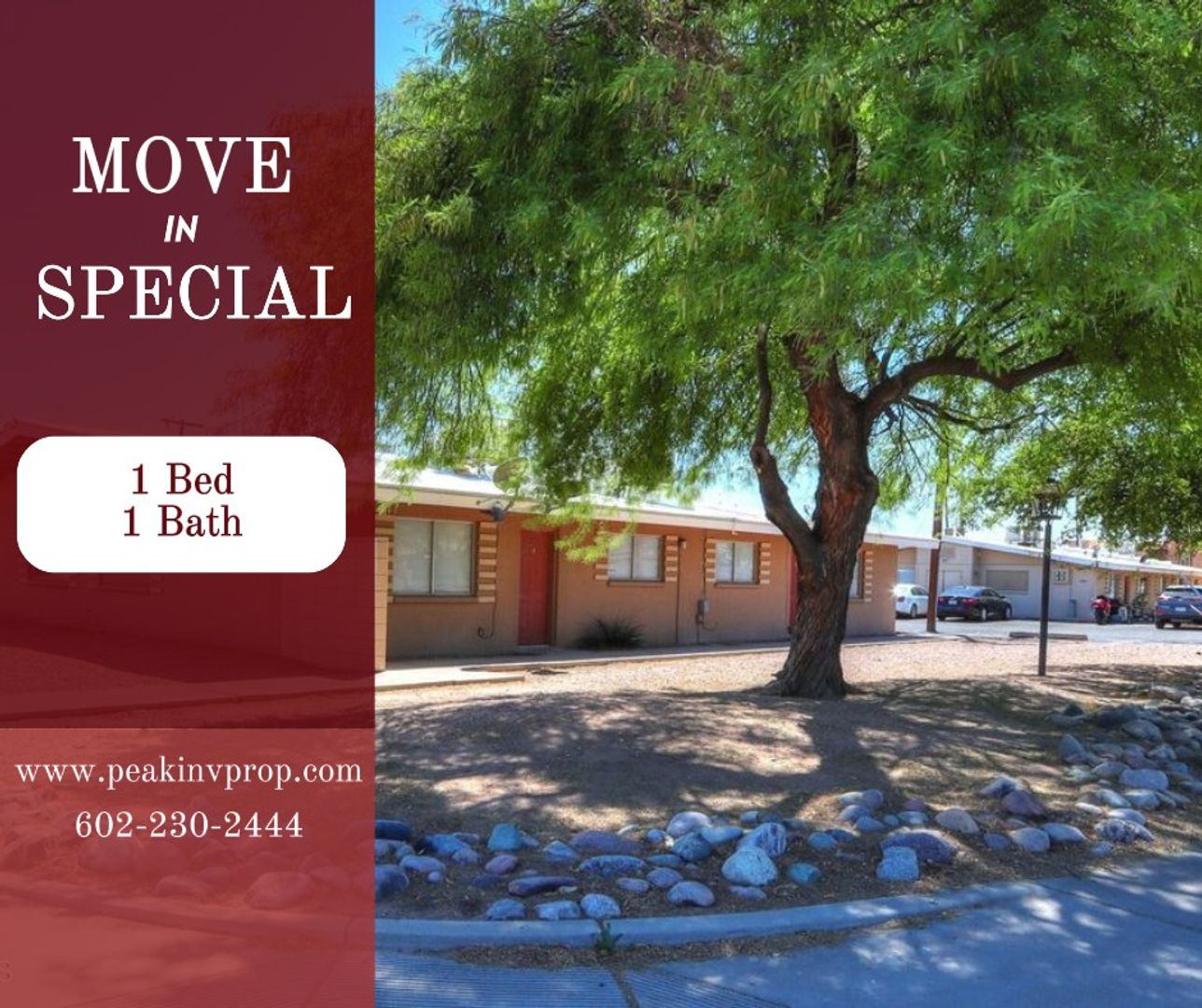 Nice single level property, new plank floors, fresh paint, updated appliances, pool, laundry on site, Nice quiet complex, long term Residents, easy qualify, tenant responsible for Electric & Gas. Manager on site can show you the inside, call (520) 201-5174 or apply www.Peakinvprop.com