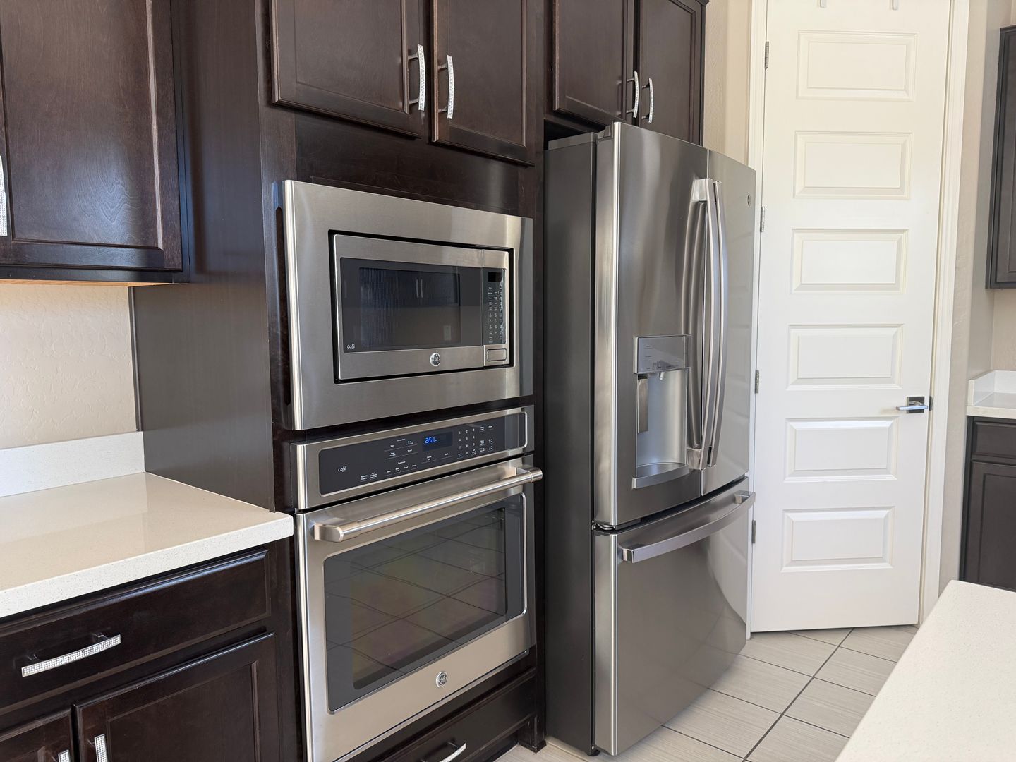 Check out this stunning 4-bedroom home located in the highly sought-after gated Sanctuary at Desert Ridge community. Enjoy stylish upgrades including quartz countertops, tile flooring, and stainless steel appliances. The backyard is your own private retreat—featuring a sparkling blue pool and low-maintenance turf, perfect for relaxing or entertaining.