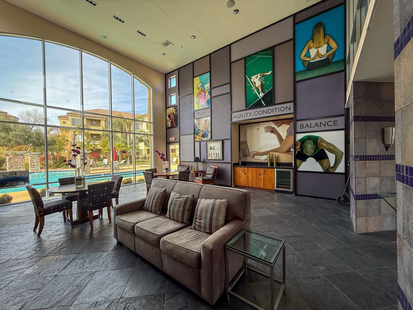 The community offers resort-style amenities including a clubhouse, business center, fitness center, outdoor grills, a pool and spa, and an entertainment center with pool tables. Easy access to shopping, dining, and major freeways makes this a great North Phoenix location.