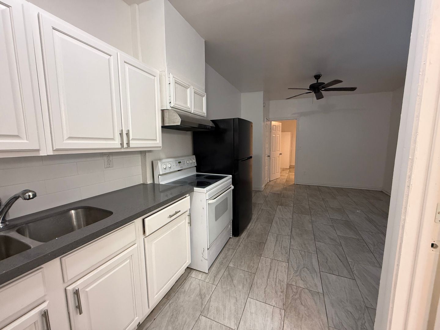 This refreshed 1 bedroom, 1 bath unit blends comfort and convenience. Features modern finishes, tile flooring, and in-unit washer & dryer. The private fenced yard with doggie door makes it great for pet owners, and you’ll have your own assigned front driveway parking.