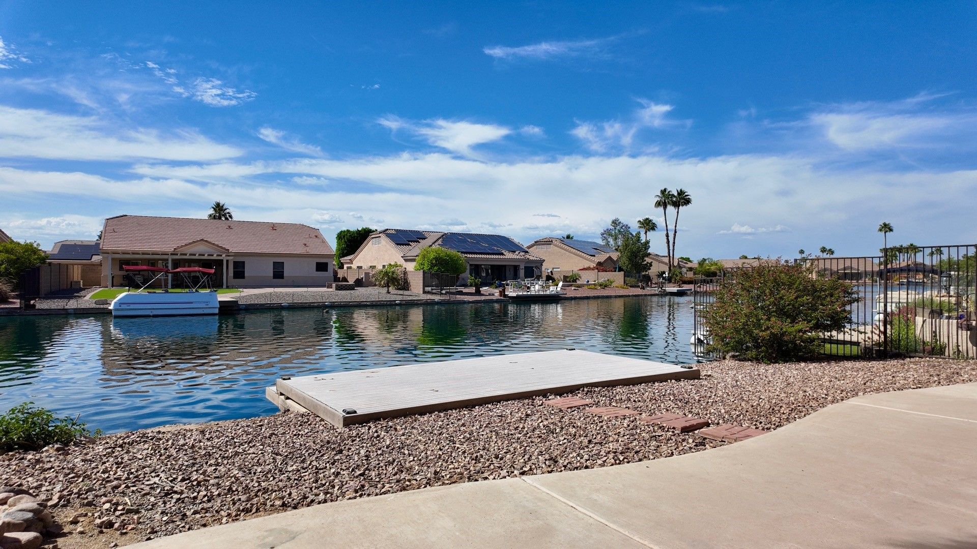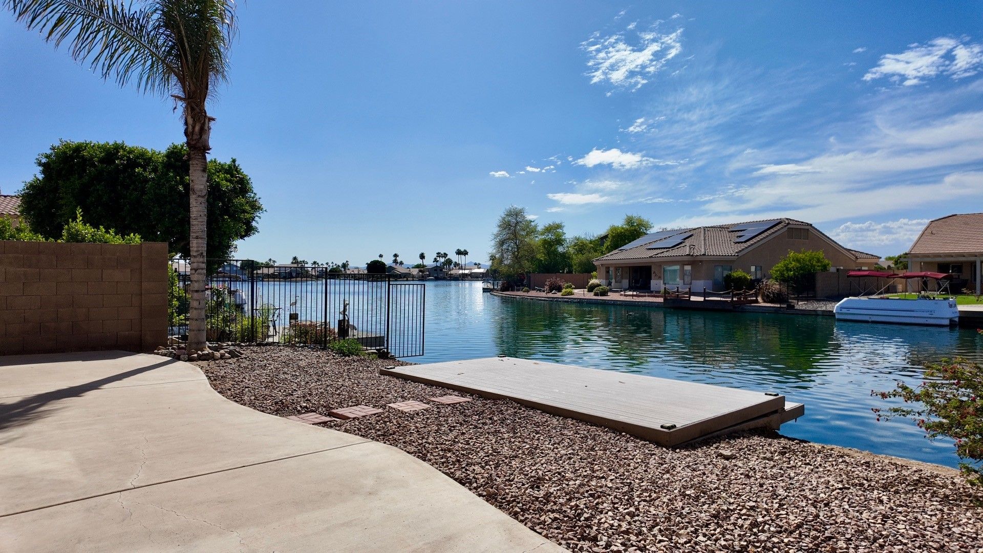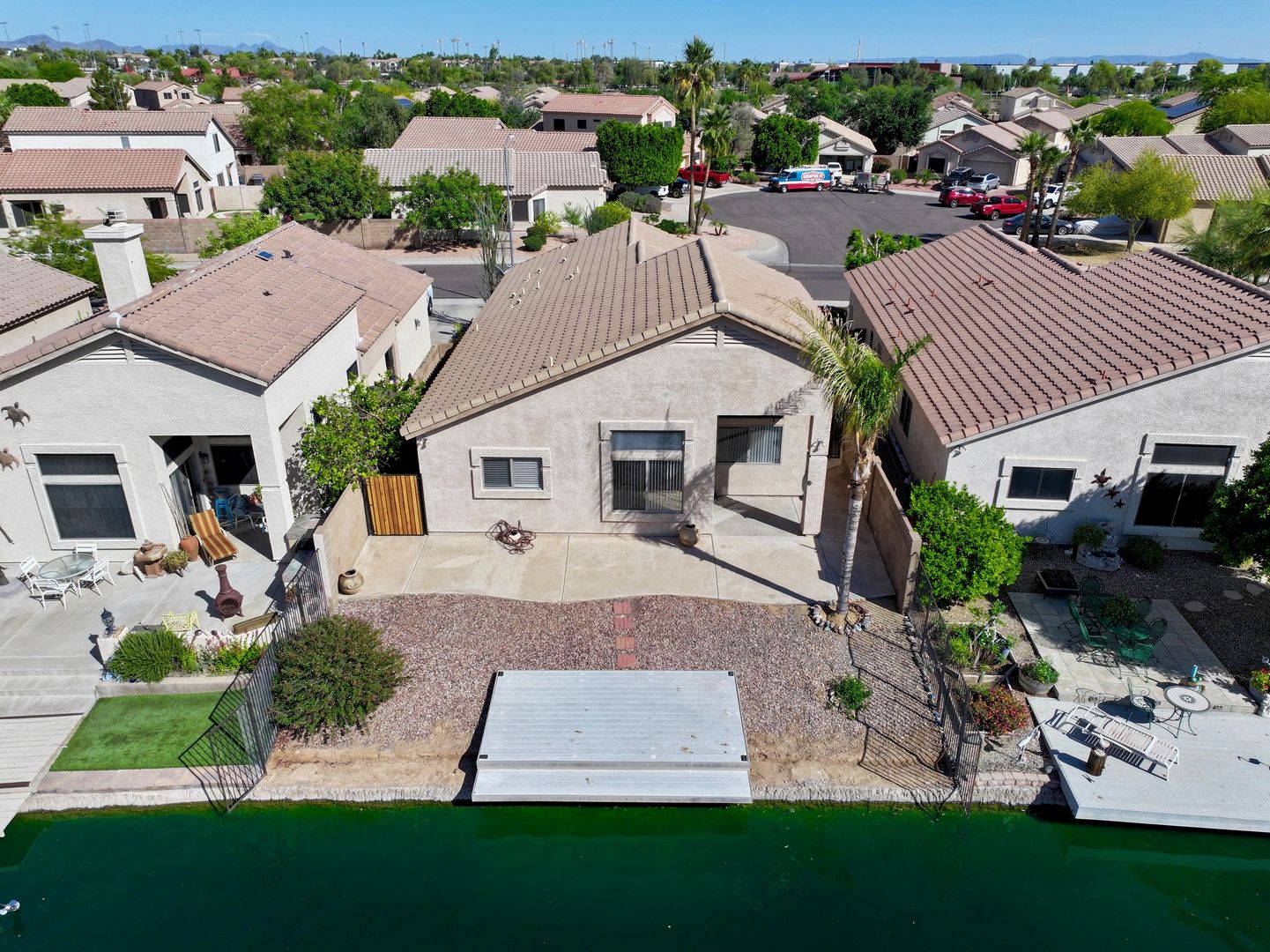 Very clean home with tile flooring, high ceilings, 2bedroom with office, walk in closet, new stone countertops, open floorplan with waterfront views, huge patio area with private boat dock, 2 car garage, all electric, all appliances included, great location & good access to Thunderbird & 101 freeway. Peak today to see inside or apply online www.PeakinvProp.com 602-230-8125