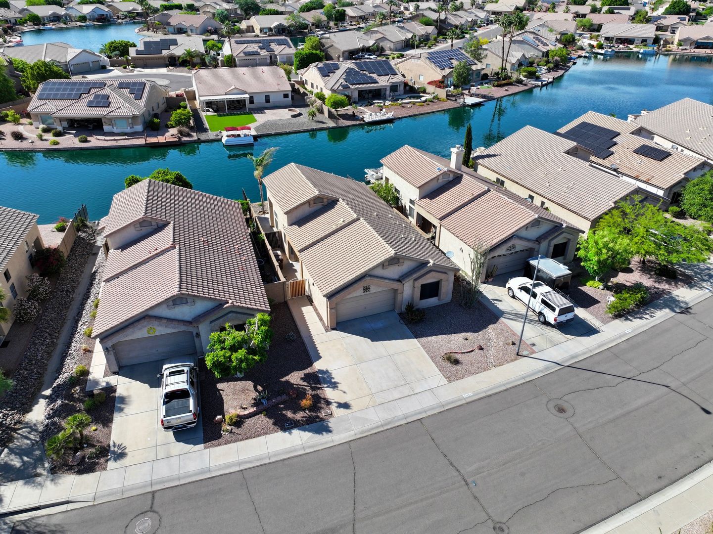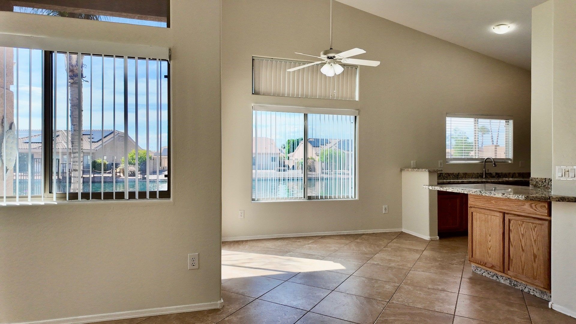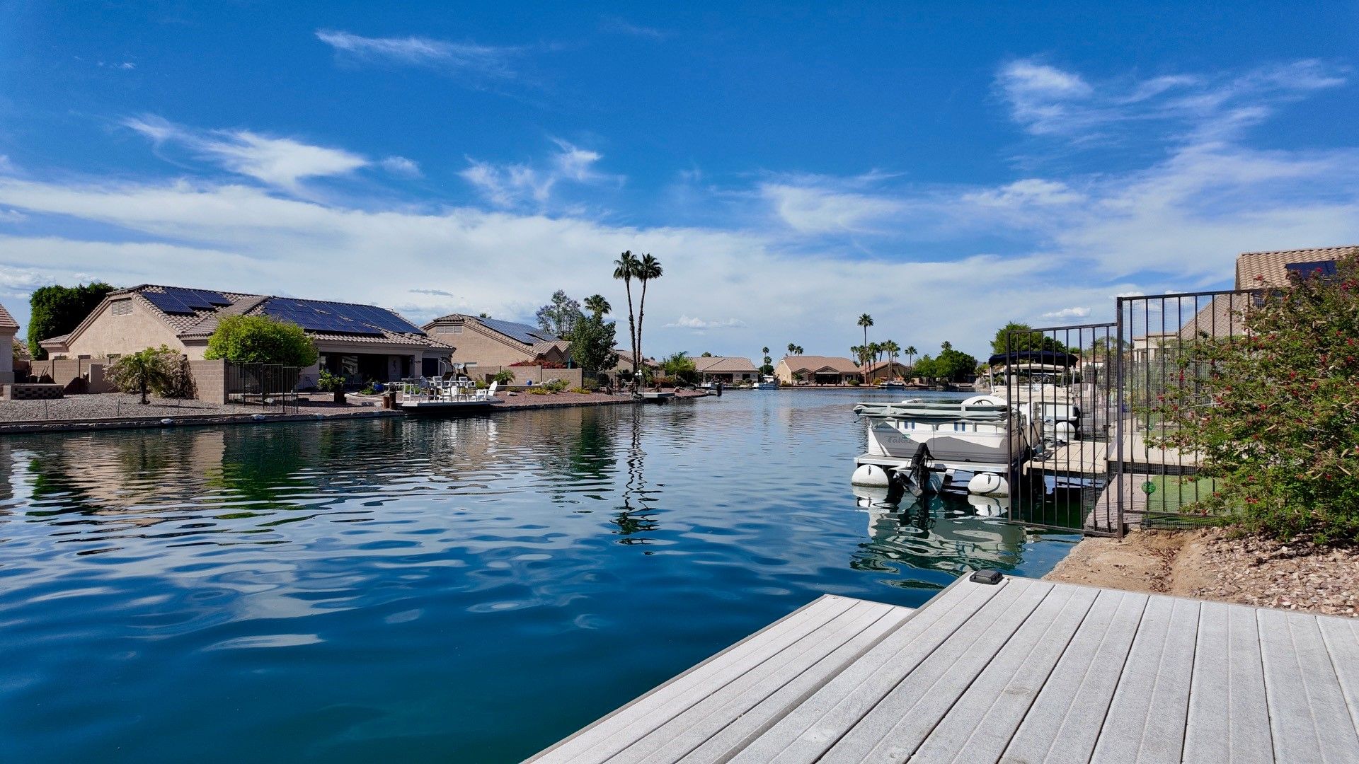 Very clean home with tile flooring, high ceilings, 2bedroom with office, walk in closet, new stone countertops, open floorplan with waterfront views, huge patio area with private boat dock, 2 car garage, all electric, all appliances included, great location & good access to Thunderbird & 101 freeway. Peak today to see inside or apply online www.PeakinvProp.com 602-230-8125