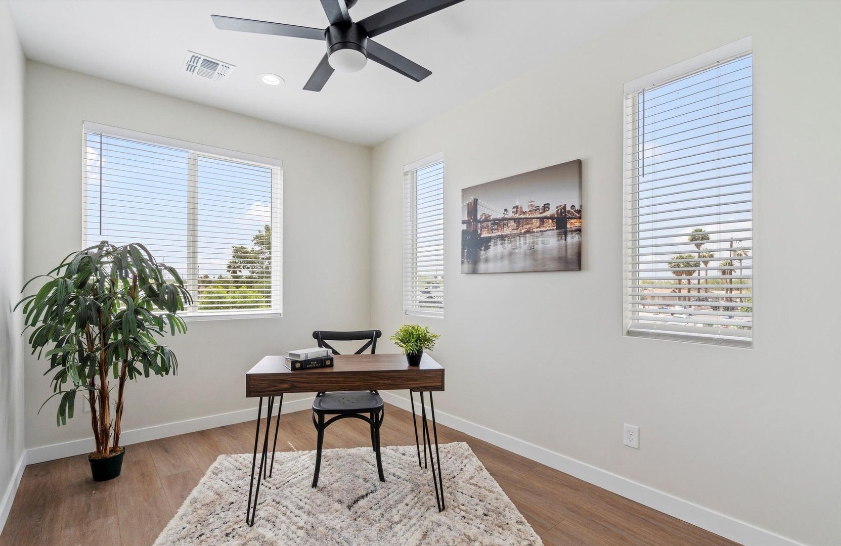 Beautifully updated 3 bedroom, 2.5 bathroom, two-story townhome in a newer community. This well-appointed home features an open layout with abundant natural light, stylish finishes, hard surface flooring, and upgraded fixtures throughout. Conveniently located between Downtown Phoenix and Arcadia, with easy access to popular restaurants, coffee shops, medical centers, and more. A great option for anyone looking for a clean, modern rental in a prime location.